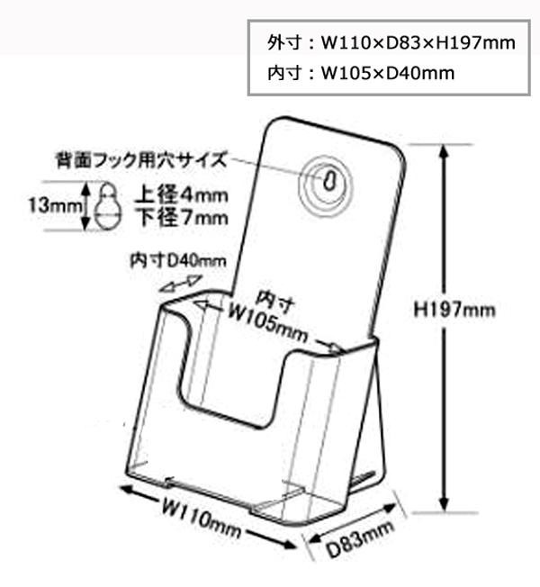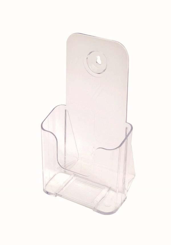 | インジェクション一体成型なので、デザインが美しく丈夫です。各種パンフレットやチラシ・カタログなどを展示・保管に便利です。背面にフック用の穴があるので、壁掛け用としてもご利用できます。 |