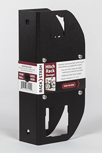 The Rack Stash saves the day and precious time, before and after any adventure involving your trailer hitch-mounted bike rack, ski rack, or cargo rack carrier. Thanks to the clever thinkers at Rack Stash, now it's a snap to quickly transfer your bike rack from it's place on the vehicle to this simple, space-saving storage spot. Rack Stash is quickly and easily mounted on any wall stud in your garage–all necessary hardware is included. Not only can you store your quiver of bikes on your hitch cycling rack above the floor and out of the way, but you can also use your Rack Stash as a bike repair stand. No more tripping over racks, bikes and hitches that are not in use. Rack Stash is built in the USA for use with 2-Inch hitch rack accessories or any hitch rack using a 2-Inch adapter.Feature