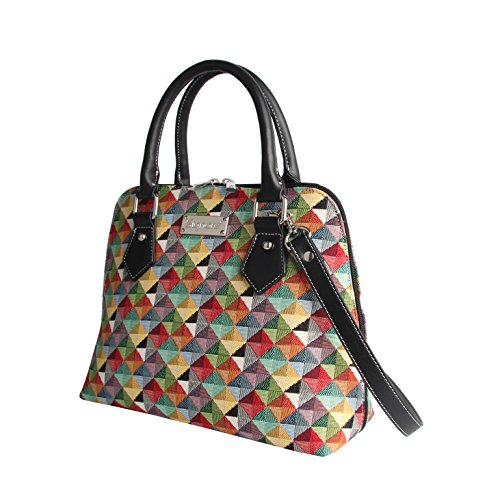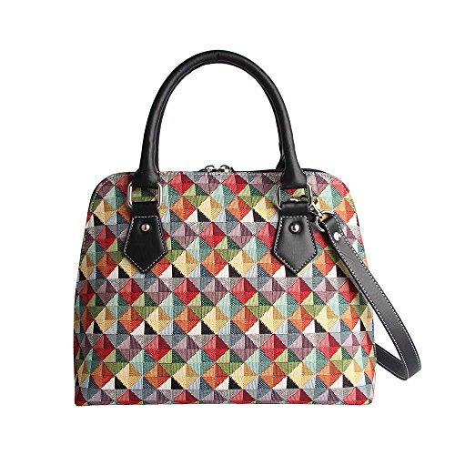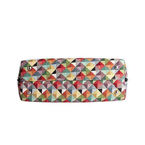 Colourful Geometric Women’s Tapestry Top Handle Handbag Detachable Strap by Signare
