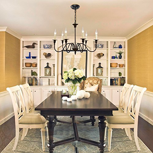 With a timeless appeal this 6-light chandelier will elegantly complements any interior. The 9.4" chain mounted chandelier can add visual interest to foyer or cast a welcoming glow over your dining table. The six candelabra lights add plenty of illumination with the use of 40 watt candelabra bulbs.