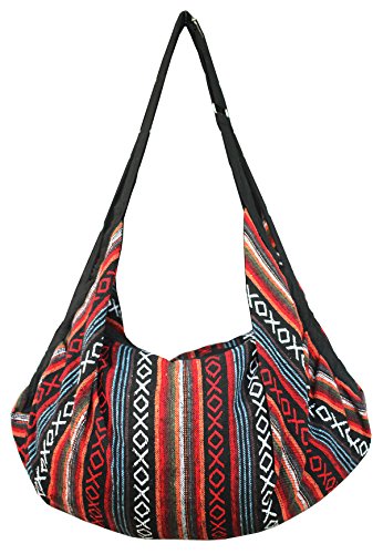 8 AM. Tribal Hmong Striped Ethnic Cotton Boho Sling Shoulder Asia Thai Pattern Crossbody Bag Backpack Top Zip (Stripe Red)