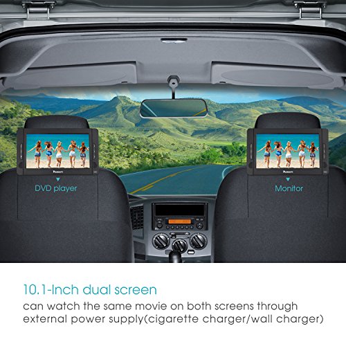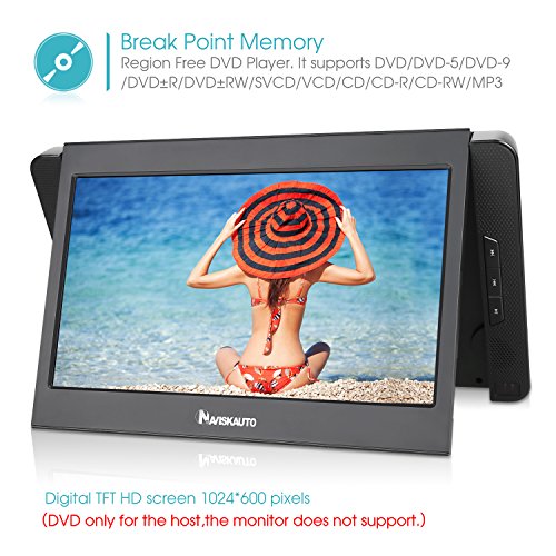 Package: 1 x NAVISKAUTO 10.1" Host DVD Player, 1 x NAVISKAUTO 10.1" LCD Slave Monitor, 1 x AC Adapter, 1 x Car charger, 1 x Remote Control, 1 x 3.5mm to RCA AV Cable, 1 x User Manual, 2 x Headrest Velcro Straps. The headrest velcro straps make it easy to mount the screens on car backseats. Warning: please take out the card on the DVD drive lens before playerback