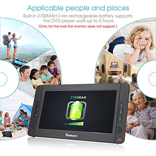 Built-in rechargeable 2700mAh Lithium battery: the DVD Player comes with large capacity li-ion battery, and supports the player running up to 5 HOURS