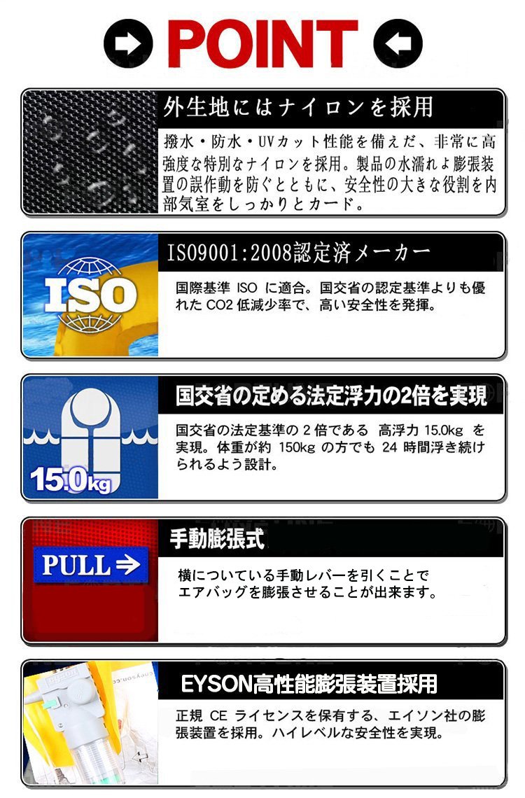 Designed to keep floating for more than 24 hours even for people weighing 150 kg.