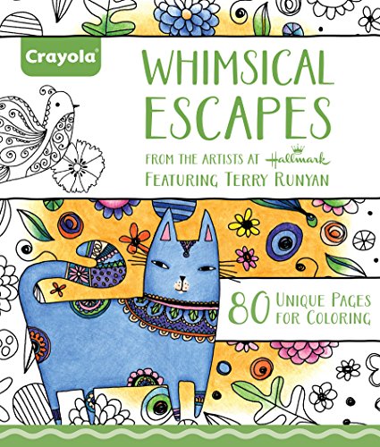 Crayola Whimsical Escapes offers soothing scenes for adults - and kids alike to color. Lose yourself in a complex-but-relaxing coloring art activity with these fun, cheerful & colorful images. Includes 80 detailed designs by Hallmark artist, Terry Runyan, on high-quality paper. Perforated for easy tear out and framing.Feature