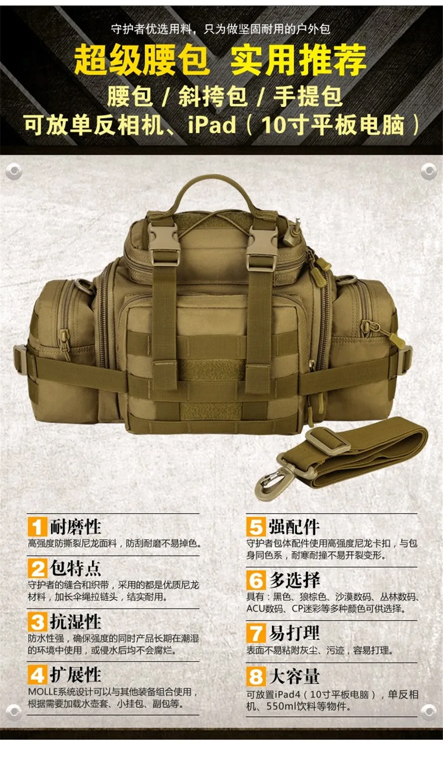 Material Composition:Wear-resistant nylon fabric