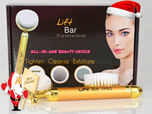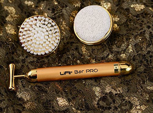 Lift Bar Pro All-In-One Device to Lift Sagging skin, exfoliate and cleanse the face. 24k Beauty Bar facial scrub with Brush Head and Pumice Head (Lift Bar Pro)