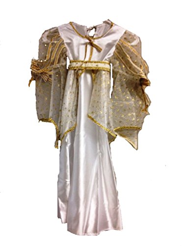 -. Feature : Super deluxe child angel costume. / Includes gown / belt / wings / gold tinsel halo. / Oversize sleeves and beautiful gold trim. / Picture provided by manufacturer is to show the gown only. Wand and headpiece shown not included.