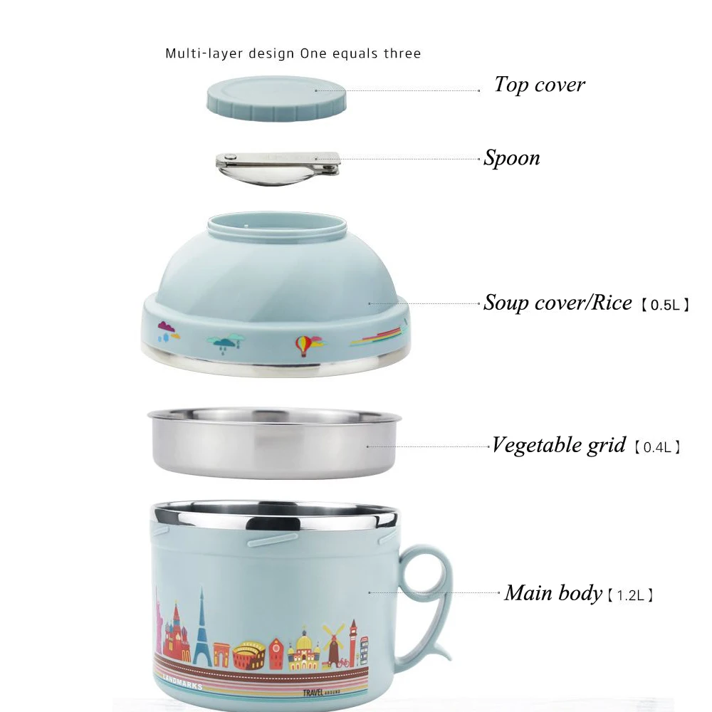 Feature:Microwavable,Cartoon,With Spoons or Chopsticks,Thermal Insulation,Leakproof,Eco-Friendly