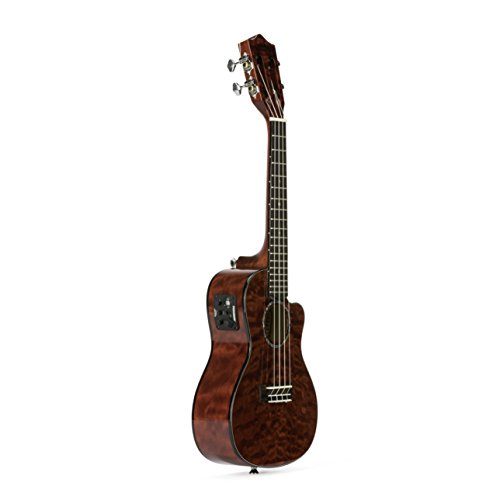 Studio : Lanikai Publisher : Lanikai Product Description This superb new Concert Cutaway electric/acoustic ukulele from Lanikai from the Sun, Sand Surf series has a laminated Quilt Maple top, back sides with a Gloss finish. It features a NuBone nut and saddle, open back Grover 97 tuners, black multi ply binding, an abalone rosette, a Fishman Kula onboard preamp system with 3 bands of EQ and a built in digital Chromatic tuner, and it comes in a great quality Lanikai foam case. It is made with a very comfortable neck profile that is accented by a wider, player friendly , 37.4mm nut. This wonderful ukulele has an amazing mellow tone whether plugged in or unplugged and it has superb tone and playability. This great combination of features makes it an ideal ukulele for serious players' stage use. It is covered by a limited lifetime warranty. 0