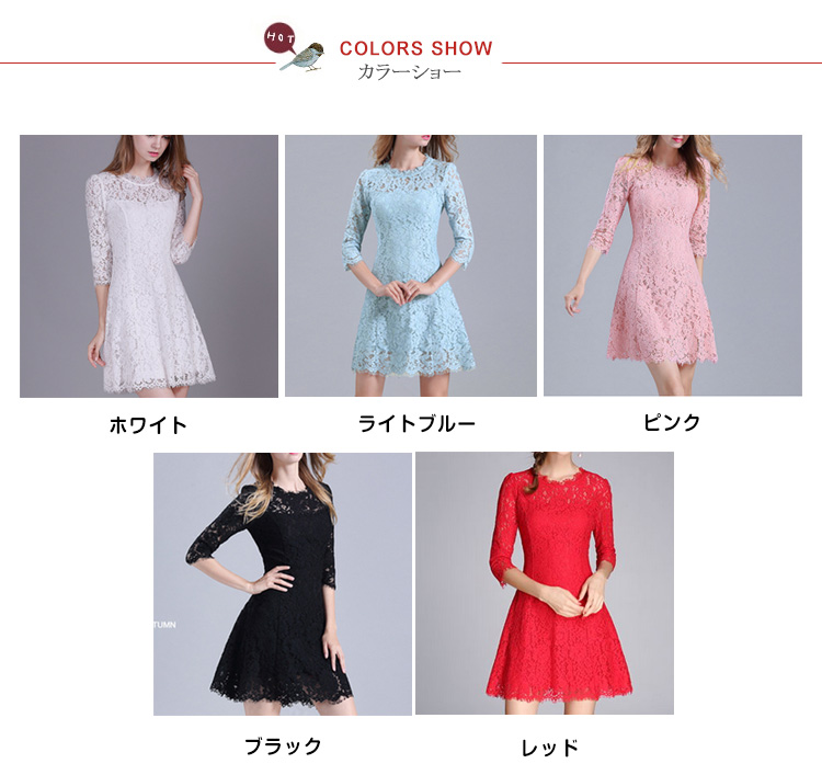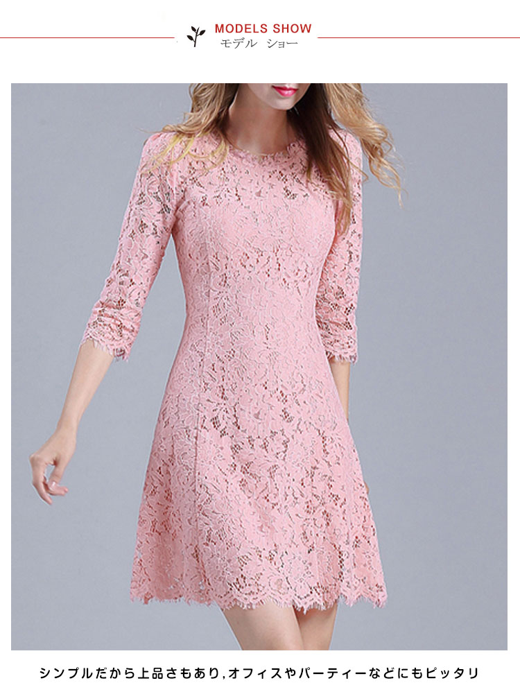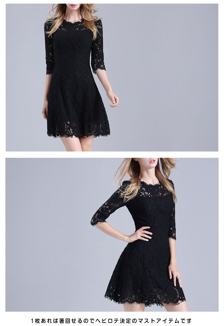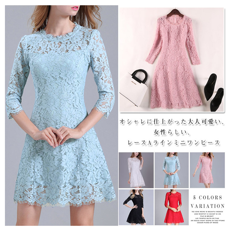 | オシャレに仕上がった大人可愛い、女性らしい、レースAラインミニワンピースシンプルだから上品さもあり,オフィスやパーティーなどにもピッタリ1枚あれば著回せるのでヘビロテ決定のマストアイテムです | |