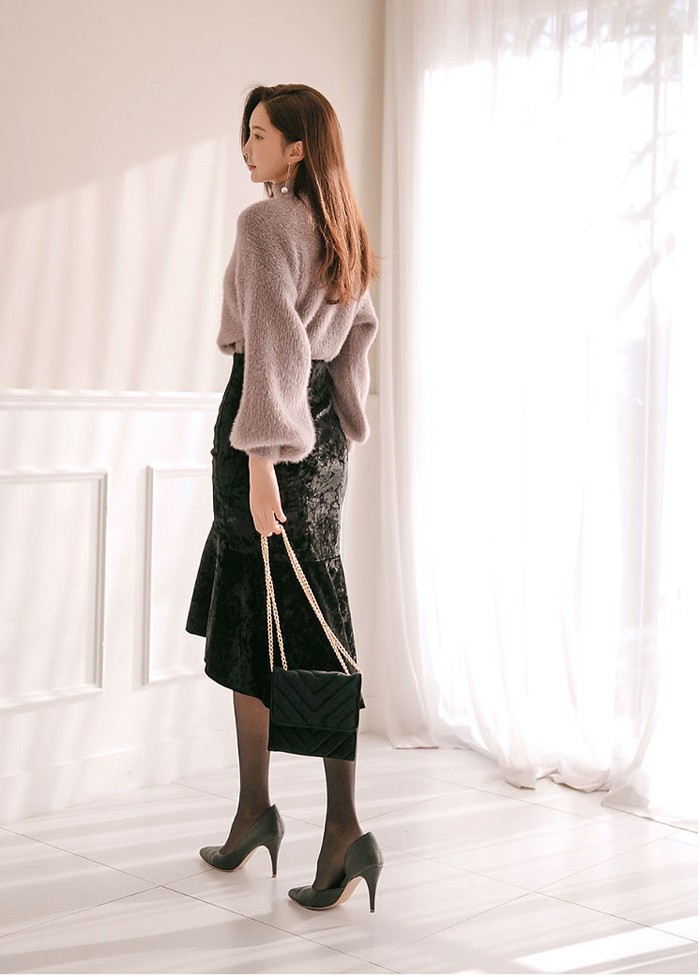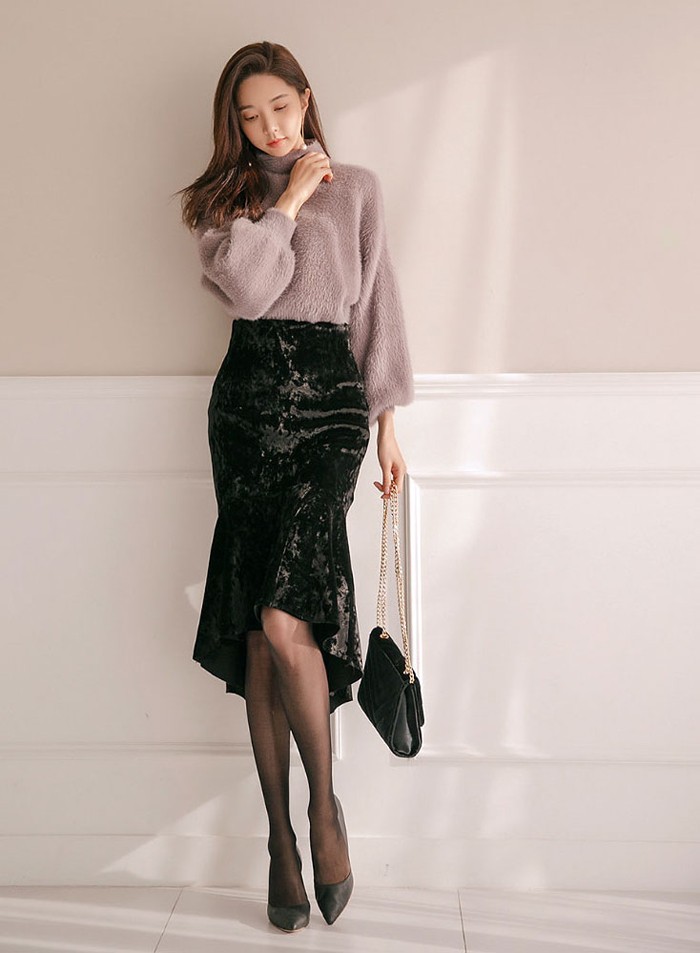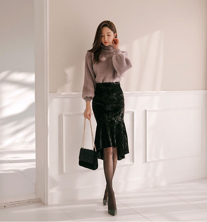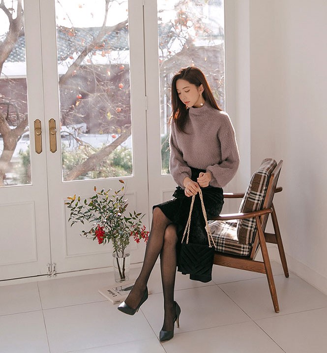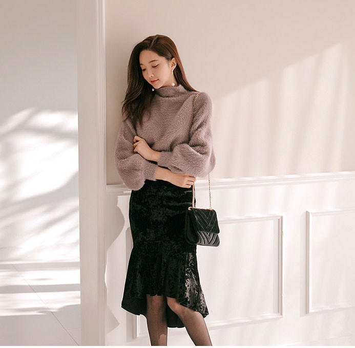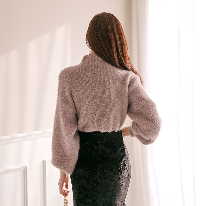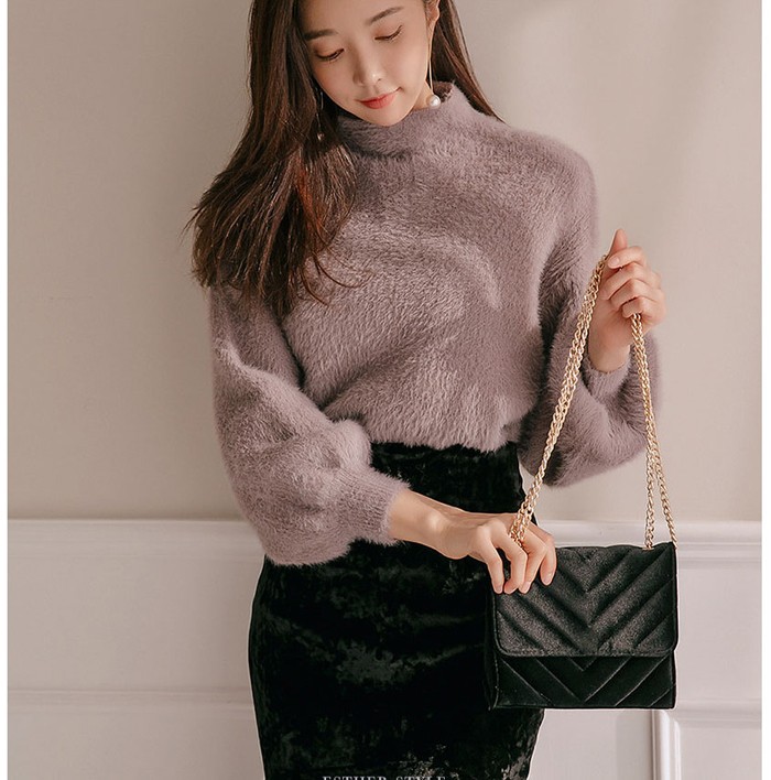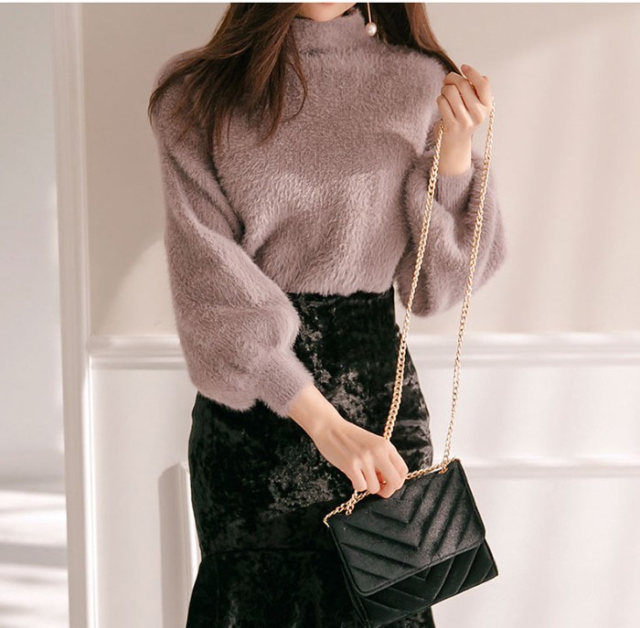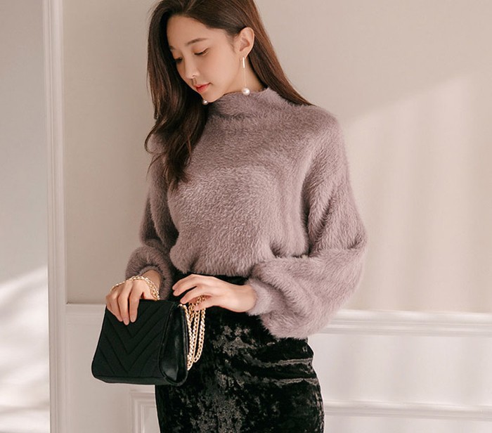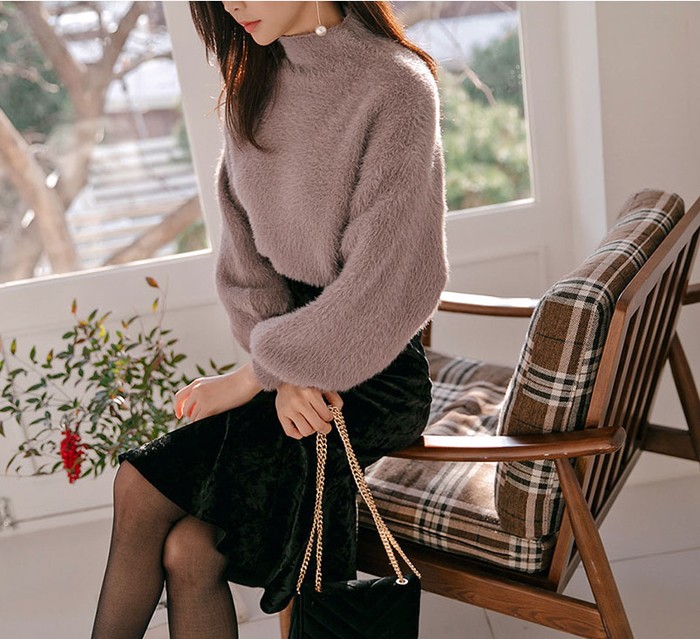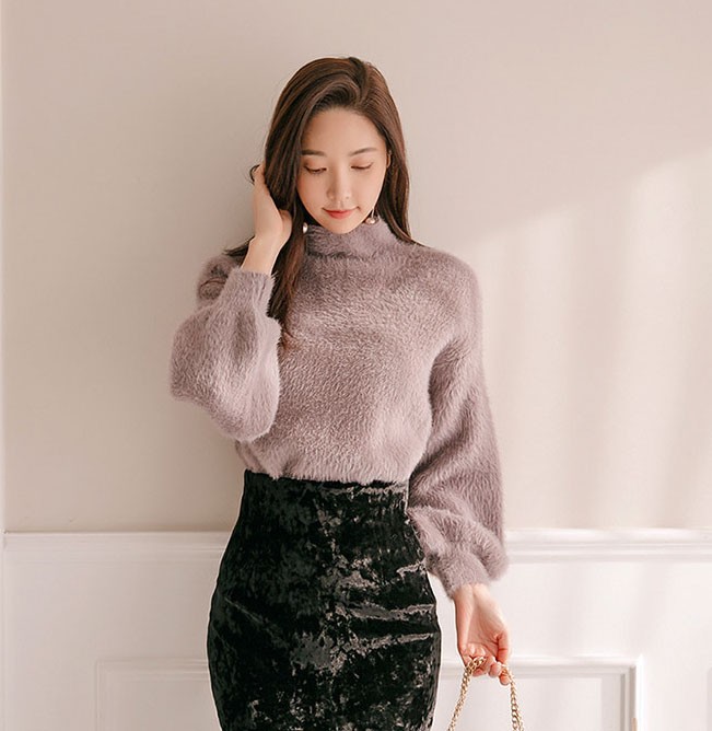 商品名:ニット トップス 起毛 無地 きれいめ 長袖