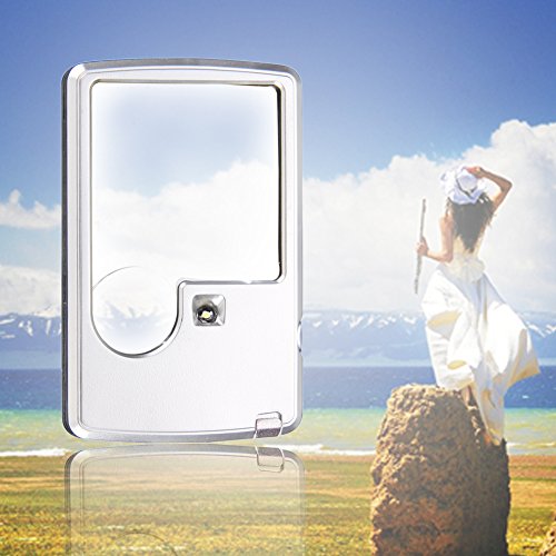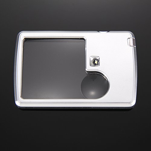 3X 6X LED Illuminated Magnifier Card Shaped Reading Magnifying Glass, Silver