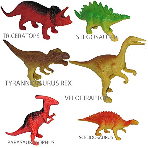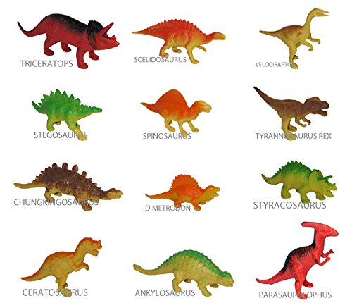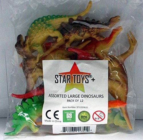 -. Binding : Toy -. Brand : Star Toys -. EAN : 0712038117512 -. Feature : AMAZON EXCLUSIVE - 12 Star Toys Brand Hard Plastic Toy Dinosaurs: Tyrannosaurus Rex, Velociraptor, Dimetrodon, Stegosaurus, Triceratops, Ceratosaurus, Spinosaurus, Styracosaurus, Parasaurolophus, Chungkingsaurus, Ankylosaurus and Scedosaurus. / LARGE DINO'S - Hollow figures, designed to snap-together - teaching your child to fix and repair them (like a Dino Doctor) and feel accomplishment. Each large figure measures 5" - 7" long and are never duplicated - all 12 are different ! Ideal for ages 3 and up. / DISCOVER - Ideal fun and games, indoor or outdoor, in the sandbox, bathtub, playground, school, home or at friends and family, you can always learn and discover the life and history of dinosaurs ! / EDUCATIONAL - fun for home, school, science projects, collecting, parties, cake toppers, for boys and girls, these toys are awesome and collectible too. / SUPER SAFE MATERIALS - tried and tested - Lead Free, BPA Free, Phthalates Free. -. IsAdultProduct : 0 -. Label : Star Toys + -. Manufacturer : Star Toys + -. MPN : dinosaur 12 -. PackageQuantity : 12 -. PartNumber : dinosaur 12 -. ProductGroup : Toy -. ProductTypeName : TOYS_AND_GAMES -. Publisher : Star Toys + -. Studio : Star Toys + -. Title : Pack of 12 DINOSAUR TOYS 5" to- 7" Inch Large Action Figure Set (Also Suitable For Cake Toppers) NO DUPLICATES Includes Tyrannosaurus Rex -. UPC : 712038117512