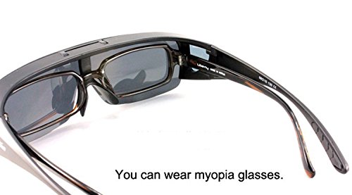 ''Flip-up Fitover Glasses'' are the ultimate solution for those who need a versatile pair of sunglasses to go over their prescription glasses. These shades not only have 100% UV protection,and they have a polarized coating on the lenses making them essential for sportsfishing, hunting, shooting sports, driving, or any activity where glare from the sun can interfere with your vision. They're designed with a shield lens that fits over your prescription glasses and protects your eyes from sunlight at almost any angle. Best of all, they have a convenient flip-up lens allowing you to transition seamlessly from sun to shade without the need to ever take off your glasses preventing lost, breakage, and theft. A perfect match for those who spend a lot of time outdoors but don't want to pay a small fortune for prescription sunglasses. It is also suitable to be a regular sunglasses if you don't have prescription eyewear .Feature
