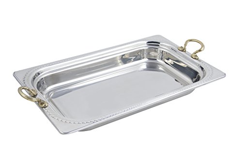 BON CHEF 5408HR RECTANGLE FULL SIZE FOOD PAN, LAUREL DESIGN WITH ROUND HANDLES