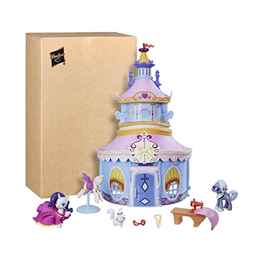 Welcome to the Carousel Boutique, the best fashion shop in Ponyville! Pretend to design and create pony fashions with the included Rarity and Hoity Toity pony figures, Rarity pony’s pet cat, Opalescence and fashion designer accessories. Dress the Rarity figure in her dress and glasses accessory, and pretend to make a fabulous garment with the sewing machine accessory. Play My Little Pony Friendship is Magic fashion adventures with this fun playset. The My Little Pony Friendship Is Magic Collection brings the places and ponies of Ponyville together in a cute miniature scale. Look for more pony figures and sets in the Friendship is Magic Collection to build out the world of Equestria. (Each set sold separately. Subject to availability.) My Little Pony and all related characters are trademarks of Hasbro.Feature