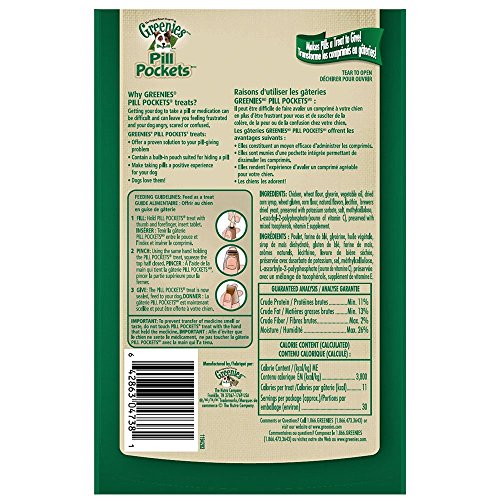 -. Binding : Misc. -. Brand : Greenies -. EAN : 0719707986462 -. Feature : Contains one (3) 3.2-oz., 30-count pack of GREENIES PILL POCKETS Treats for Dogs Chicken Flavor - Tablet Size / Chicken Flavor Greenies Tablet Snack for Dogs #1 Vet Recommended choice for giving medicine* / Best Value Deal for Dog Treat Tablets - Chicken Flavor Snack Treats for Small Medium & Large Dogs / A low-calorie, healthier alternative to human food Easy to use; simply fill, pinch, and give / FREE BONUS PET FOOD TRAVEL BOWL WITH EVERY PURCHASE ONLY FROM HOT SPOT PETS & CRAZY4BARGAINS? -. Label : Greenies -. LegalDisclaimer : FREE PET FOOD COVER LID BONUS WITH EVERY PURCHASE ONLY FROM HOT SPOT PETS -. Manufacturer : Greenies -. PackageQuantity : 3 -. ProductGroup : Pet Products -. ProductTypeName : PET_SUPPLIES -. Publisher : Greenies -. Studio : Greenies -. Title : Greenies Pill Pocket Tablet for Dogs (3 Pack) Chicken Flavored Dog Treats (90 Tablets) with Bonus Hot Spot Pets Collapsible Travel Bowl -. UPC : 719707986462