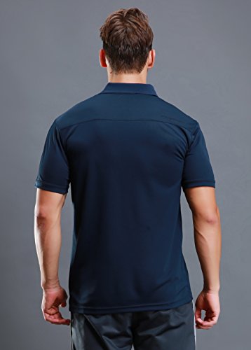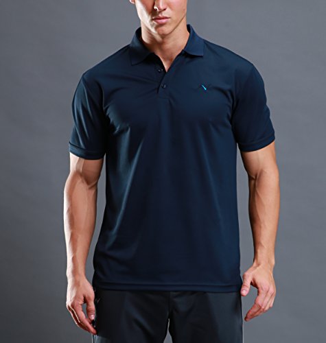 Nooz Men's Sports Training Quick-Dry Tech Solid Polo Shirt with Logo (Large, Blue)