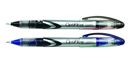 -. Title : Staples OptiFlow Needle-Tip Rollerball Pens, Fine Point, Black, Dozen