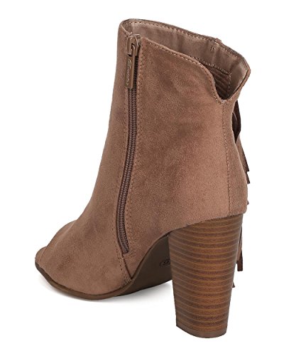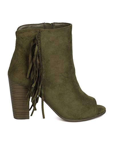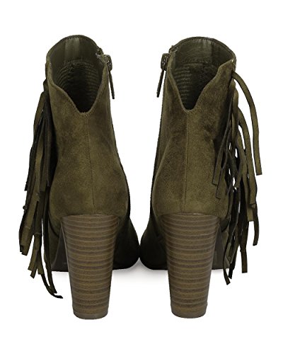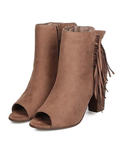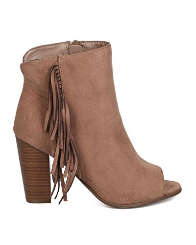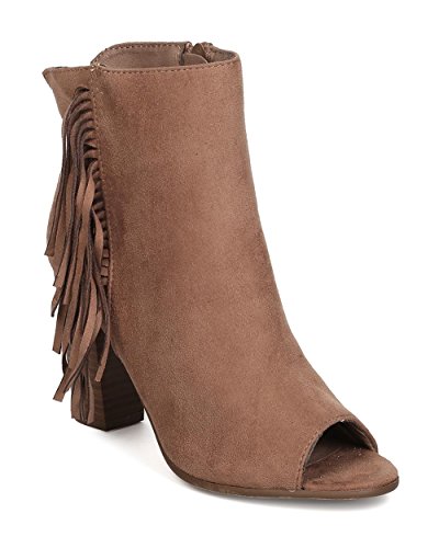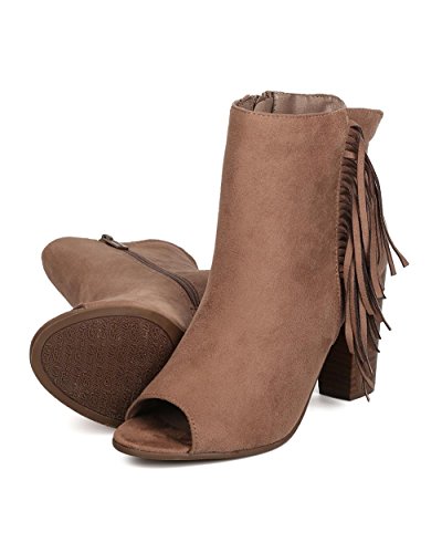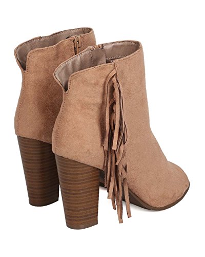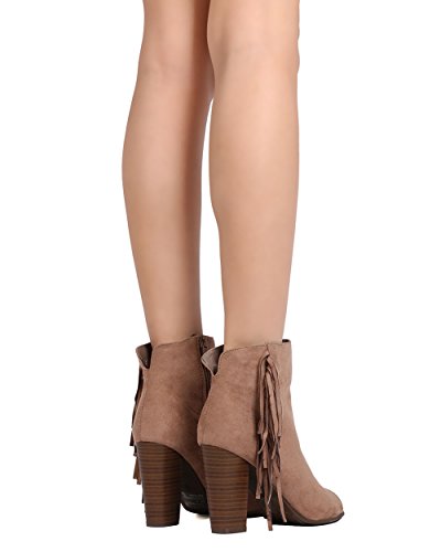 Women Faux Suede Fringe Heel Bootie - Dressy, Everyday, Versatile - Block Heel Bootie - GC51 By...