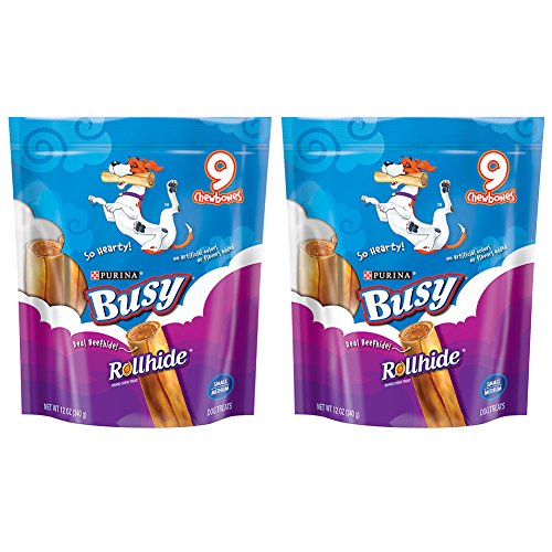 -. Title : Purina Busy Rollhide Dog Bone Treats (2 Pack) - 12 Ounces - Small/Medium (9-Count Per Pouch - 18 Rollhides Total)