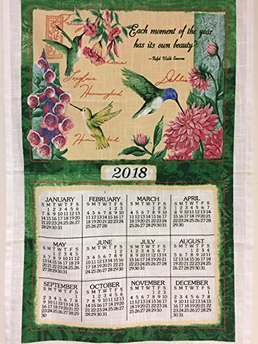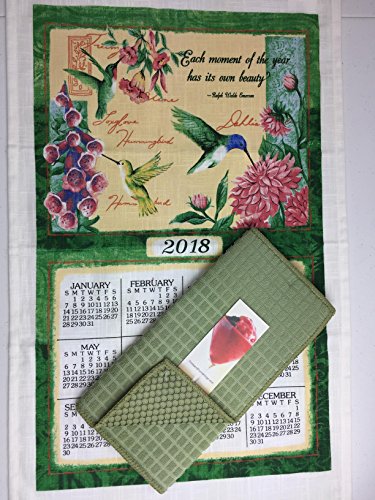 2018 Wings and Blossoms Hummingbird Calendar Towel & Drying Mat Bundle Hummingbird Kitchen Linen Calendar Towel and Green Dish Drying Mat 3 Piece Bundle