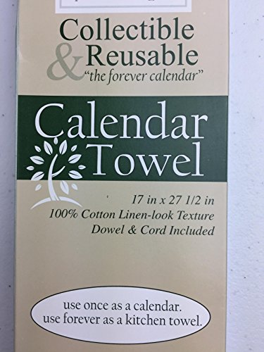 COLLECTIBLE LINEN COTTON 55/45 reusable calendar as a kitchen towel or framed or made into a pillow measures about 27.5 x 17 and comes in a box.