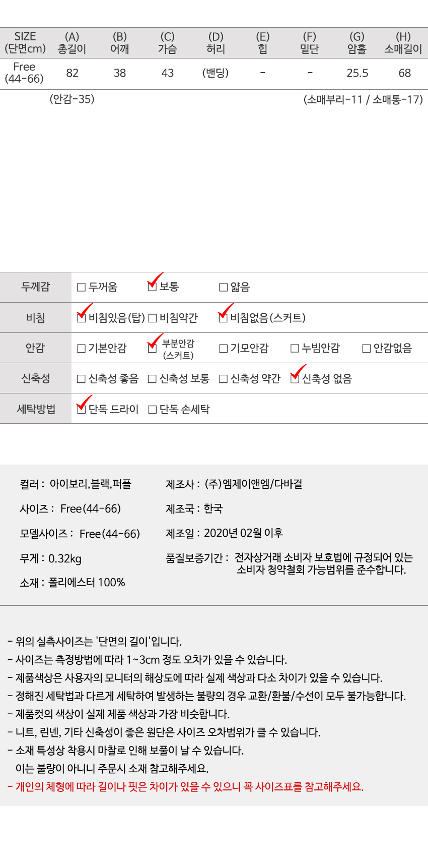 | 특이 사항 | 배송, 변경, 반품 환불에 대한 문의는 위 연락처로 문의 주세요. | ||