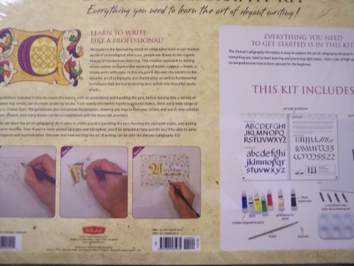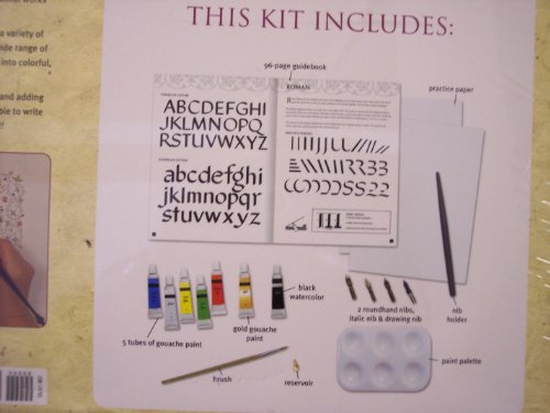 -. Feature : 96 Page Guide, Practice Paper, 5 Tubes of Gouache Paint, Gold Gouache Paint, Black Watercolor, Brush, Reservoir, 2 Roundhand Nibs, Italic Nib & Drawing Nib, Nib Holder, Paint Palette