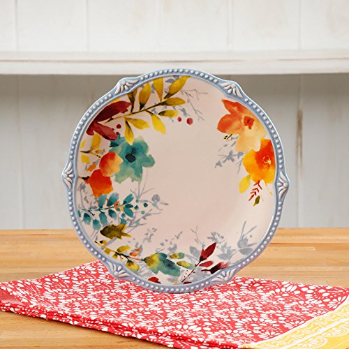 Studio : The Pioneer Woman Publisher : The Pioneer Woman Product Description The Pioneer Woman New 2017 Set Willow Salad Plates Creates a lively dining experience with its joyous floral design. With its floral patterns and alluring colors, it is a fashionable addition to any gathering. This salad plate set is made of durable stoneware. Dishwasher and Microwave Safe. 0
