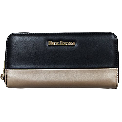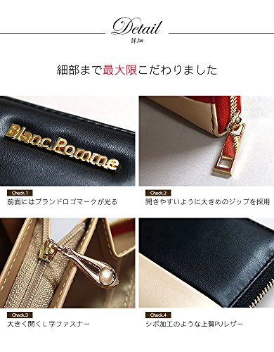 -. Feature : 普段使いにちょうどいいサイズ人気のラウンドジップ財布。上質なPUレザーのボディにBlanc Pommeのロゴマークをあしらったラウンドジップウォレット / サイズ/縦19cm×横9.5cm×マチ2.5cm / 大ポケット×4 カードポケット×8 チャック付小銭入れ×1 / 素材/合成皮革 / 生産国/中国