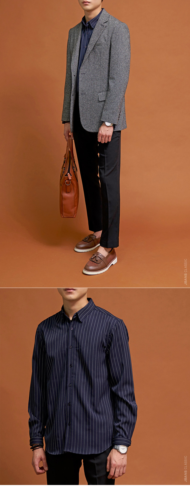 캐주얼하게 치노팬츠나 데님팬츠 등과 매치하면 잘 어울리며, 슬랙스와 코디해도 세련된 코디를 연출할 수 있습니다.