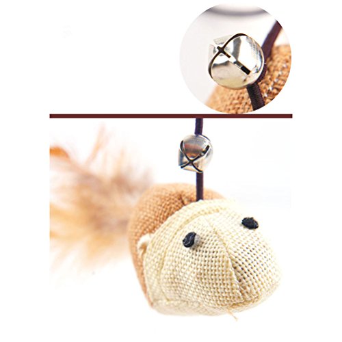 -. Binding : Misc. -. Brand : UEETEK -. EAN : 0191388270755 -. Feature : Characteristic and exquisite design with bell for cat interaction. / Easy for gripping and storage. / Keep your kitten healthy and active while having fun by yourself. / Makes for a great gift for yourself or other cat lovers. -. Label : UEETEK -. Manufacturer : UEETEK -. MPN : 7LY105015REL4S5248 -. PackageQuantity : 1 -. PartNumber : 7LY105015REL4S5248 -. ProductGroup : Pet Products -. ProductTypeName : PET_SUPPLIES -. Publisher : UEETEK -. Studio : UEETEK -. Title : UEETEK Burlap Mouse Shape Cat Teaser Interactive Toy Wand with Bell and Feather -. UPC : 191388270755
