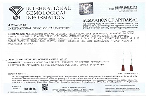 -. Binding : Jewelry -. Brand : Ian & Valeri Co. -. Department : womens -. Feature : Amber is the lightest and warmest stone that exists, which makes it the most comfortable and attractive gem in jewelry. / Amber is good to wear for any everyday life occasion. / Amber is a fragile organic stone. Please be careful / Height 0.25" Width 0.25" Length 1.64" Weight 3 gr -. Label : Ian and Valeri Co. -. Manufacturer : Ian and Valeri Co. -. Model : 24735 -. MPN : 24735 -. PackageQuantity : 1 -. PartNumber : 24735 -. ProductGroup : Jewelry -. ProductTypeName : FASHIONEARRING -. Publisher : Ian and Valeri Co. -. Studio : Ian and Valeri Co. -. Title : Black Cherry Amber Silver 925 Leverback Contemporary Earrings