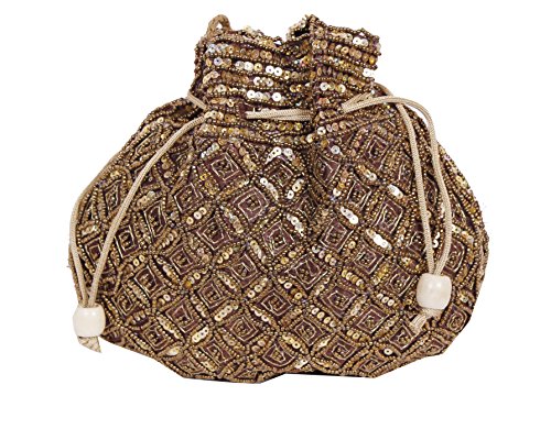 Indian sequence Potli Bag/ wedding purse/jewelery purse for girls & women (Base Color- Dark Brown)
