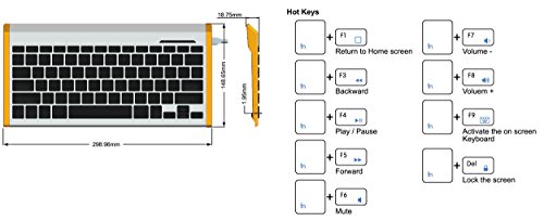 - Feature : Bluetooth 3.0 Technology with up to 30ft Operating Range - Support HID (Human Interface Device) / Mini size 299x149x19 mm / Rechargeable Li-ion Battery with On/Off Switch / Silent X type Scissor Keys / Support HID (Human Interface Device) and Microsoft, iOS and Android 3.0-4.4 OS. Mapping with iOS.