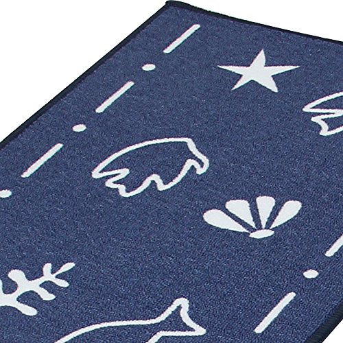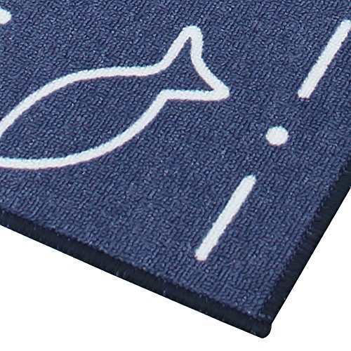 Carvapet 2 Piece Non-Slip Kitchen Mat Rubber Backing Doormat Runner Rug Set, Fish Shell Design (Navy 15"x47")