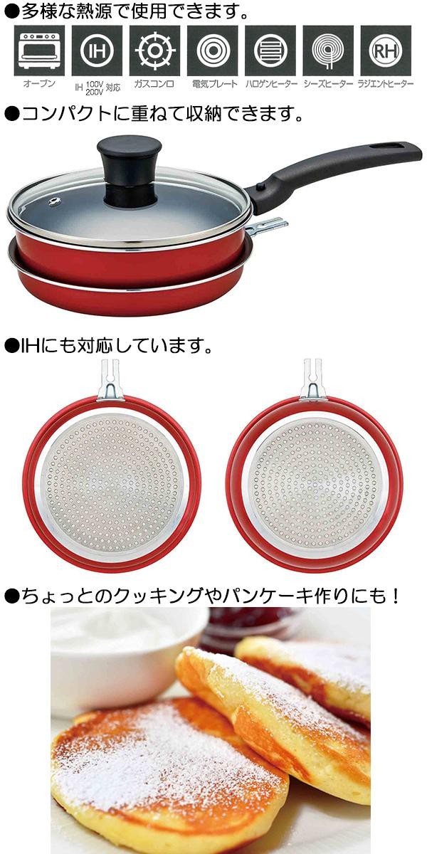 | 仕様 | 対応熱源:IH(100・200V)、ガスコンロ、オーブン、電気プレート、ハロゲンヒーター、シーズヒーター、ラジエントヒーター 電子レンジ:使用不可 食洗機・乾燥機:使用不可 満水容量:鍋1.3L、フライパン0.65L |