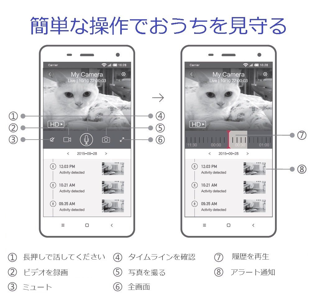 2 way audio (with microphone / speaker) you can talk with family who are at home from home.
