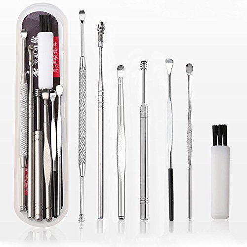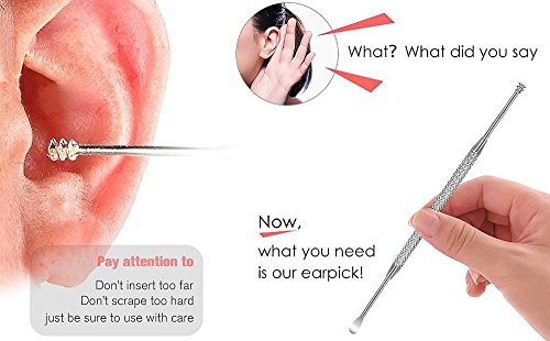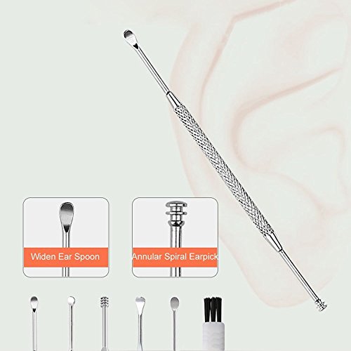Studio : Webberstore Publisher : Webberstore Product Description Details Color: mainly silver Material: durable medical grade stainless steel Available for all people.BUT children should use under adult supervision and help Easily remove ear wax and keep your ears clean. Some of the tool are double-ended design, non-slip grip,safe and easy to use, convenient to carry. Note: 1. Clean the earwax removal tool with alcohol before using. 2. Please help and guide your child to use earwax removal tools gently and carefully,do not put them too deep into the ear canal 3. Consult a doctor for help if your ear have any discomfort Package includes: 6 x Ear pick 1 x Cleaning brush 1 x Storage case