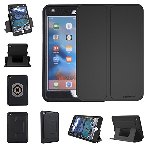 iPad mini 4 Case,by eSellerBox Heavy Duty Full-body Rugged Armor Hybrid Multi-Layer Defense Protective With kickstand Stand Holder Built-in Screen Protector Case Cover (Black)
