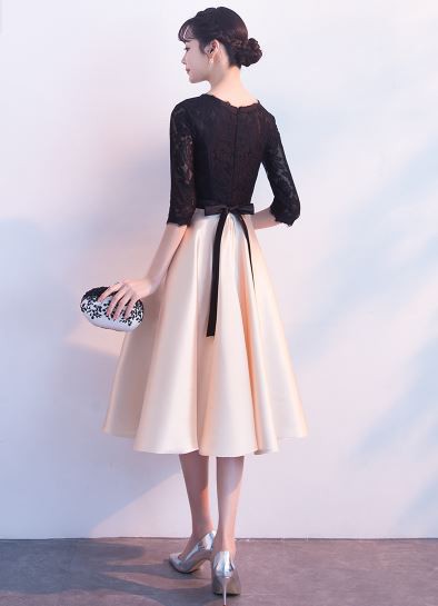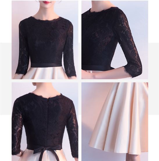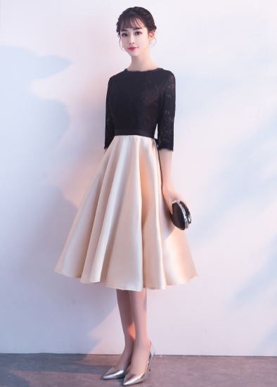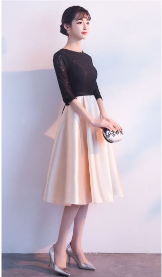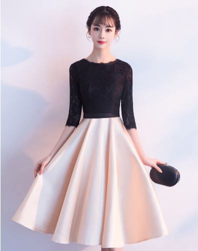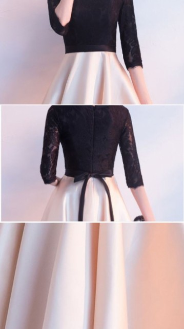 レース使いがエレガントなバイカラードレスです。