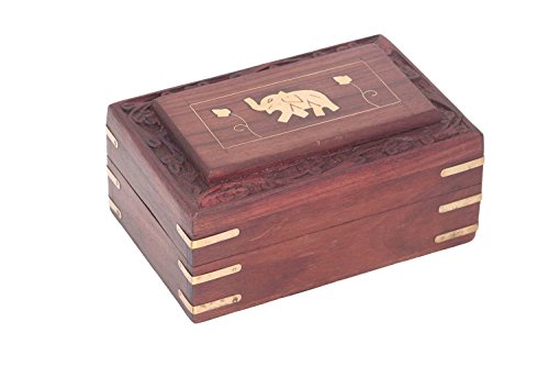 Christmas or Thanks Giving Day Gift, Wooden Jewelry Box, Rectangle Shape, Single Elephant Inlay Vintage Box, Storage box, Brown Color Jewelry Box, Women’s Jewelry Organizer Box - 6 X 4"