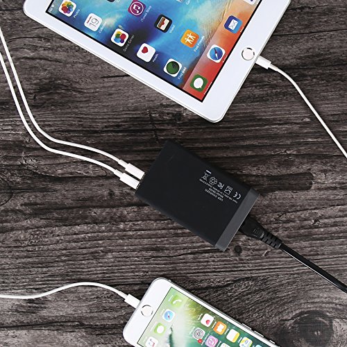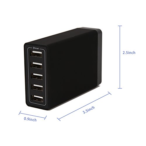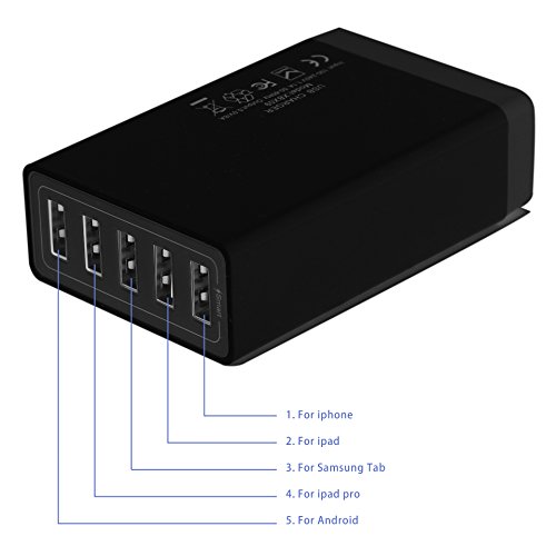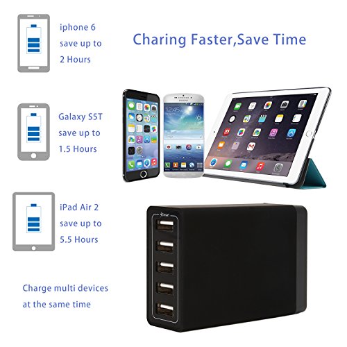 ETvalley 40W/8A 5 Port USB Charger for iPhone, iPod, Samsung Tab, Android, Black