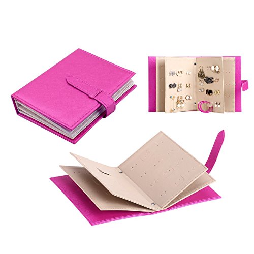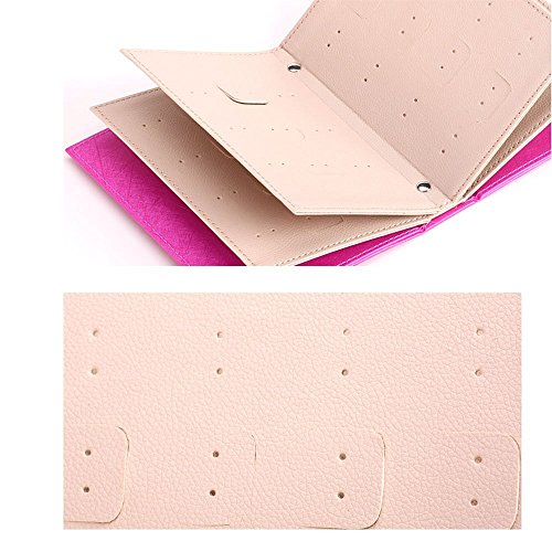 Yunan Jewelry Travel Organizer -Litte Book Design PU Leather Jewelry Earrings Studs Storage Box Cover Case (Rosy)