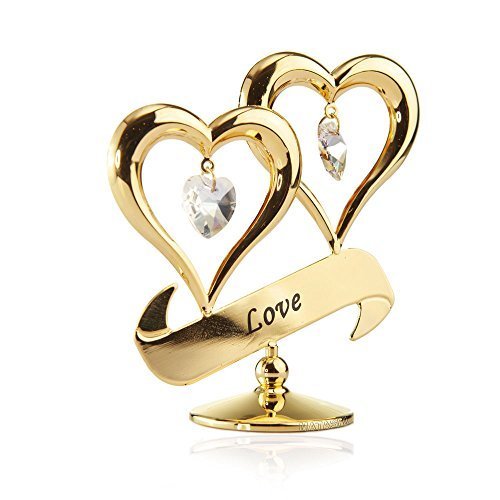 Feature : EYE-CATCHING DESIGN: Two delicate hearts with dangling crystals suspended inside, hang above a "Love" inscribed banner. Crafted with 24K Gold and studded with precision cut Matashi® Crystals you can be sure of the highest quality materials / DIMENSIONS: 2.75 x 1.5 x 3.0 inches (weighs 0.1 pounds). The size ensures it is the perfect size for any interior design motif, home décor or collection! With the stable base, you can spruce up your desk or place on a table top to make any room nicer and remind you of your special someone. / ELEGANT PACKAGING: Comes secured in a velvet pouch within a luxury gift ready box. Write a personal message on the provided gift card and be assured of your product authenticity with the included official Matashi® individually serialized warranty card / GIFT READY: The perfect gift for the special person in your life. Give as a gift on an Anniversary, Mother's day or any other time you want to celebrate the love you feel for someone. The perfect ornament to cement your love and celebrate any relationship / SATISFACTION GUARANTEED: All Matashi® products are covered by a 100% Money-Back satisfaction guarantee and craftsmanship is guaranteed under a 2 year limited warranty