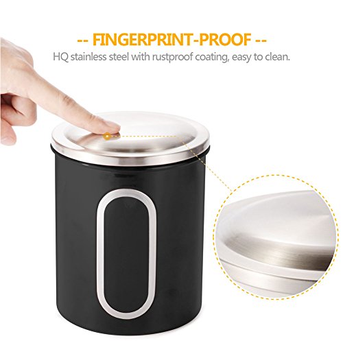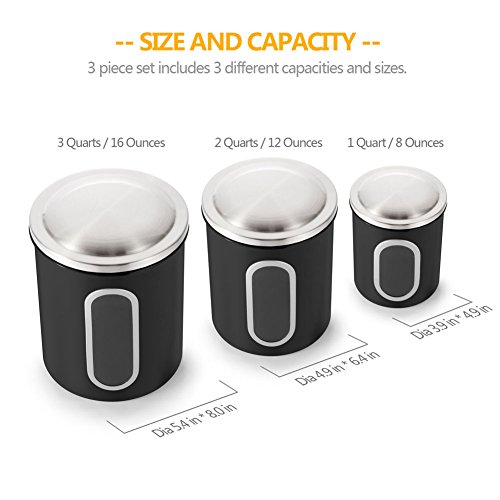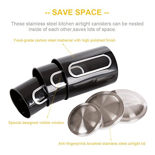 1.Save Space - Set includes 0.5 & 0.75 & 1 Gallon stainless steel storage containers,these black stainless kitchen canisters can be nested inside of each other,saves lots of space to reduce cabinet or countertop clutter when empty.