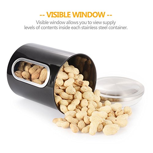 3.Clearly Visible Acrylic Window - Shows exactly what these stainless steel window canisters hold without opening the lids and supply levels always clearly visible.