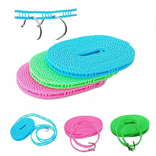 Honbay Pack of 2 Clotheslines 5m Windproof Portable Adjustable Clotheslines,Extra-strong Clothes Ropes, for Outdoor Indoor Home Travel Drying Random Color